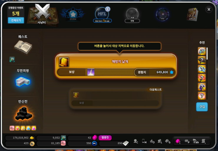 기존의 무한사냥에서 새로 4개의 던전이 추가됐습니다