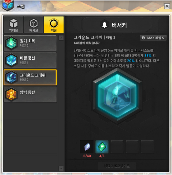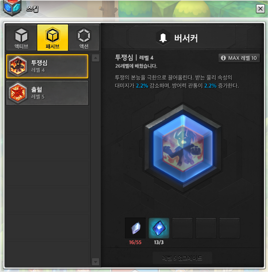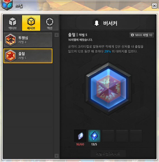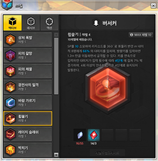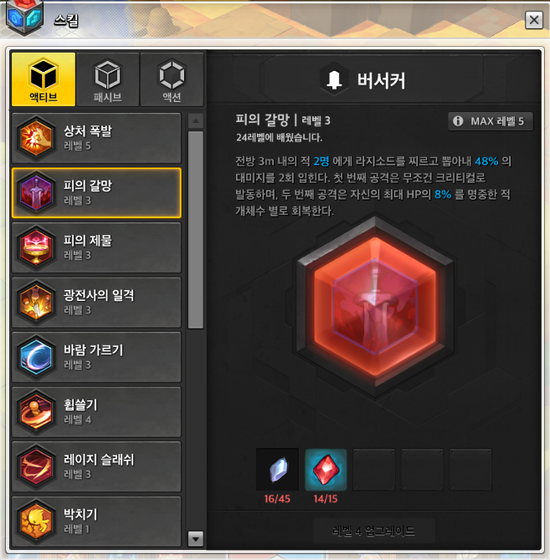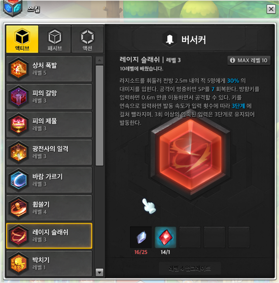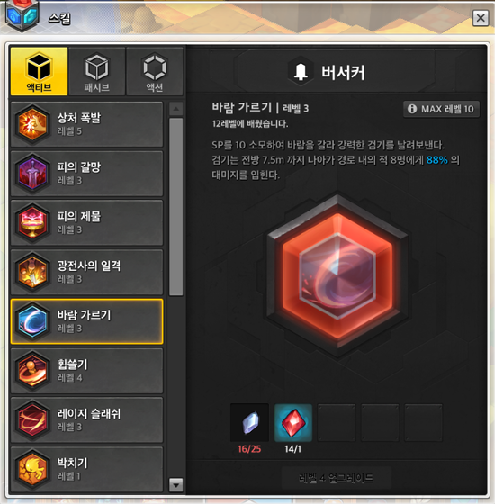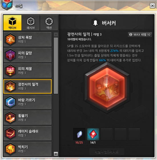 스킬 레벨 - 마스터 권장, 버서커 스킬트리 필수