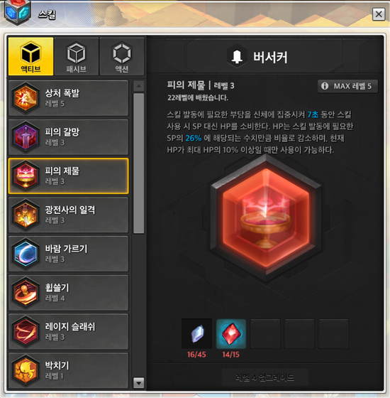스킬 레벨 - 마스터 권장합니다. 버서커 스킬트리 필수
