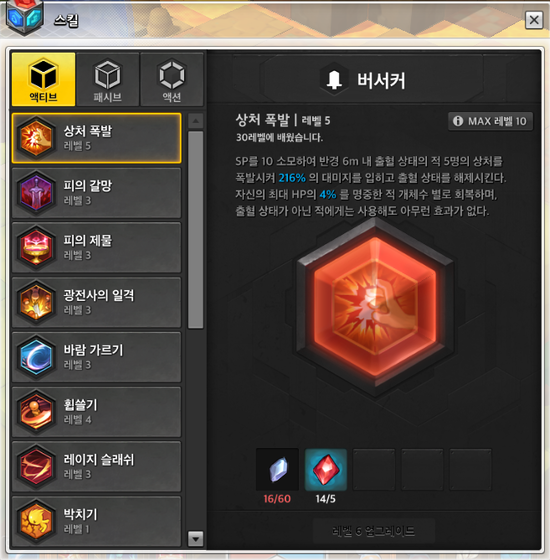 스킬 사용도 - 30렙의 상처 폭발 스킬을 쓰기 위한 스킬.