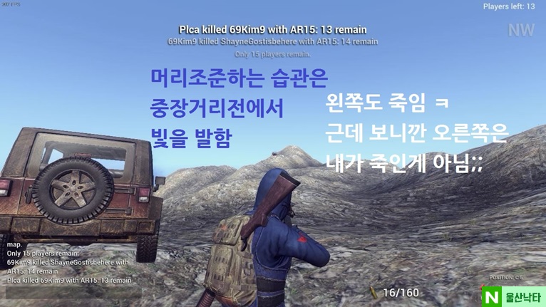 기타게임 게임공략 & 팁 () H1Z1 하이즈 총 잘 쏘는 법 공략 King of the kill index 2016.11.24 - 02:51 16 H1Z1 King of the kill 총 잘 쏘는법 공략 예전에 즐겨하던 H1Z1이란 스팀 게임인데요다른 FPS 게임과 틀리게 총 쏘는게 잘 안맞습니다분명 조준 똑바로 한거같은데 맞지않는 내 총알!하이즈에는 탄도학이란 개념이 있어서 그런데요. 게임내 중력영향을 주게 표현해놨다. 이미지 설명을 보시다싶이 일정거리까지는총알이 날라가다가 중력영향을 받아서총알이 하향하게 됩니다.그래서 멀리 있는 적을 조준시에는 머리 위를겨냥해서 쏴야 하기도 하죠. 중장거리 교전 이렇게 항상 멀리 있는 적과 교전시에는정수리 부분을 맞춘다는 생각으로쏘셔야 맞습니다. 기본적으로 배틀로얄은 서바이벌 개념이기때문에이렇게 어부지리 효과를 보는 경우가 많네요 상대 움직임 예측샷 어느정도 중장거리 교전이 익숙해지시면가까운 적과 교전을 기피하게 됩니다.아무래도 위험도가 높으니깐요. 상대는 저를 보자마자 바로 내려서 공격을하려고 합니다. 하지만 거리를 벌리고 차분하게제압했습니다. 총을 쏠때 급하게 쏘실 필요없이신중하게 한발씩 쏘셔도 충분합니다. 상대방의 이동경로를 어느정도 예상하면서제 케릭터만 움직이는게 아니라 에임도 같이움직여줘서 쏘시면 좋습니다. 근거리 샷건전 근거리전은 저도 자신 없어하는 교전인데이 부분은 정말 말씀드리기가 어렵네요기본적으로 근거리전을 예상하고 샷건을 들었을시예상치 못하게 적이 나오면 급하게 총을 쏘는경우가 많습니다. 저도 그러고요.ㅋㅋㅋ 근거리전은 확실히 젊은분들이 ㅋㅋㅋ저는 반응이 느려서 제가 쏠때쯤엔 상대가이미 이동해있는 경우가 많더라고여하지만 샷건이 워낙 강해서 왠만한 몸통샷을쏴도 죽기때문에 신중하게 쏘시다보면그 반응속도도 점점 짧아지는거 같더라고여 보시면 샷건 연사속도마다 쏜게 아니라실수샷 하고나서는 차분하게 몸에 갖다댔죠 근거리전 샷건은 대충 이런식이고AR이나 AK 총으로 교전하실때는 머리보다는안면샷을 한다는 생각으로 연사하시는게좋습니다. 해당 이미지 보충 설명이 없네요.ㅠㅠ Attached file ź.jpg 130.9KB 01.jpg 151.8KB 02.jpg 108.0KB 03.jpg 108.9KB 04.jpg 103.1KB 05.jpg 102.7KB 06.jpg 114.8KB 08.jpg 120.0KB 09.jpg 133.3KB 01.jpg 140.3KB 02.jpg 135.9KB 03.jpg 140.3KB 04.jpg 113.7KB 06.jpg 147.2KB 0ӿ.gif 902.0KB 01.jpg 135.2KB 02.jpg 132.8KB 03.jpg 138.7KB 04.jpg 147.9KB 0ٰŸ.gif 7.59MB 05.jpg 154.7KB 0 이 게시물을.. N 0 0 [던전앤파이터] 26/02/03 종결마부 정리소다팝 0 index index 님의 최근 글 [메이플스토리] 제로 스토리 프롤로그 공략/제로생성/그림자마을 10 2016 12.28 [이터널시티3] 지역 정화 작전 레이드(구주간) 공략 45 2016 11.24 [이터널시티3] 최고 난이도 "뉴멕시코 북부 지역" 공략 27 2016 11.24 [이터널시티3] 리뉴얼 이후 감염 병동 튜토리얼 공략 32 2016 11.24 [이터널시티3] 용병과 펫, 동료 시스템 공략 31 2016 11.24 index 님의 최근 댓글 없는데요 2017 01.03 감사합니다 2017 01.02 감사합니당 2016 12.28 감사합니다 2016 12.17 감사합니다 2016 12.17 글쓴이의 서명작성글 감추기 댓글 쓰기 에디터 사용하기 닫기 글쓴이 비밀번호 댓글 등록 view_headline 목록