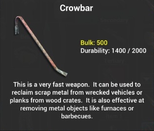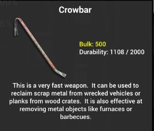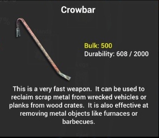 그경우 스크렙메탈이 급할때 ! 빠루를 들고 차량을 때려 메탈스크랩을 얻을수있습니다 !
