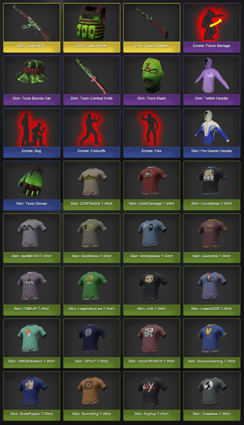 Crate(상자)의 구성품 (레어 아이템 포함)