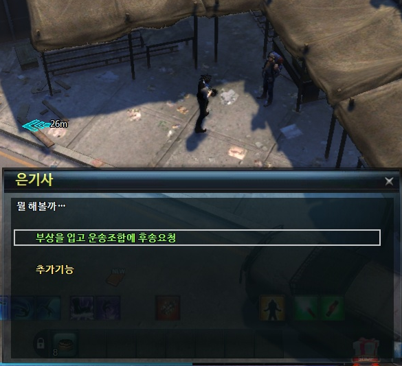 그리고, "부상을 입고 운송조합에 후송요청"을 클릭합니다.