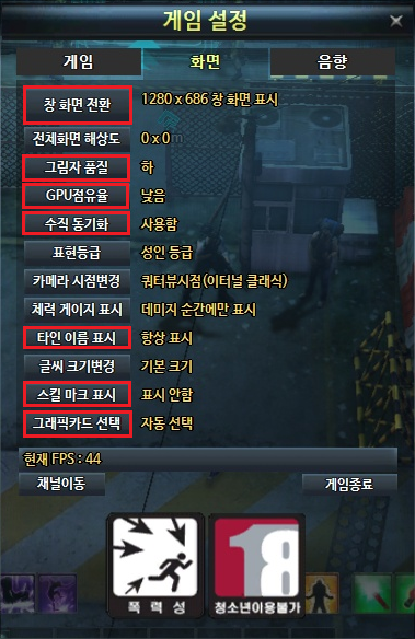 더불어, 사양이 부족해 프레임이 낮게 나오시는 분들도 이번 팁을 참고해보시길 바랍니다.