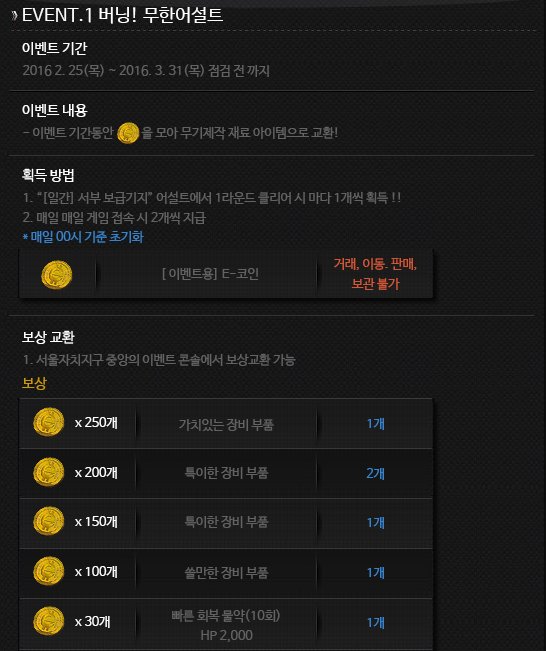 2/25 ~ 3/31 까지 진행하는 버닝! 무한 어설트 이벤트