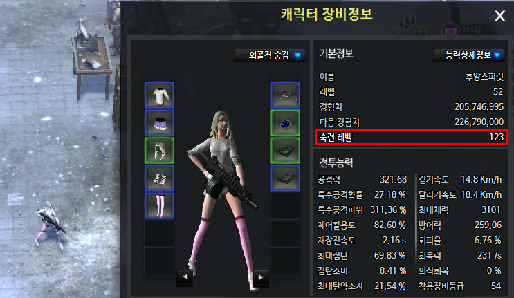 숙련 레벨 123 달성!!( 현재 숙련 레벨 만렙은 160.. )