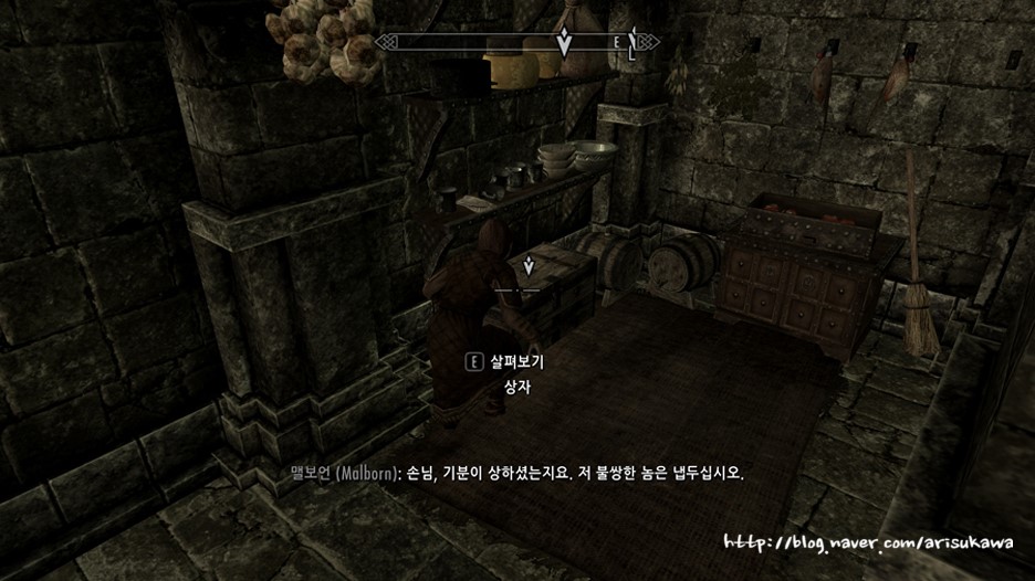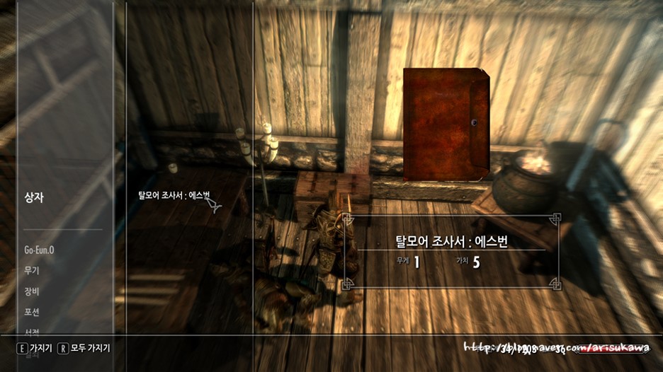 경비병의 바로 뒤에있는 상자를 뒤지면 에스번이라는 인물에 대한 추가정보를 획득할수가 있습니다.