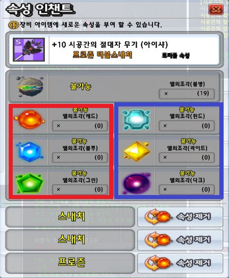 그리고 속성 부여의 단계가 올라갈수록 더 높은 엘의 조각을 요구하게 되니