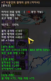 속성 저항력이 75 + 75 = 150이 아닌 110으로 부여되니 참고하세요.