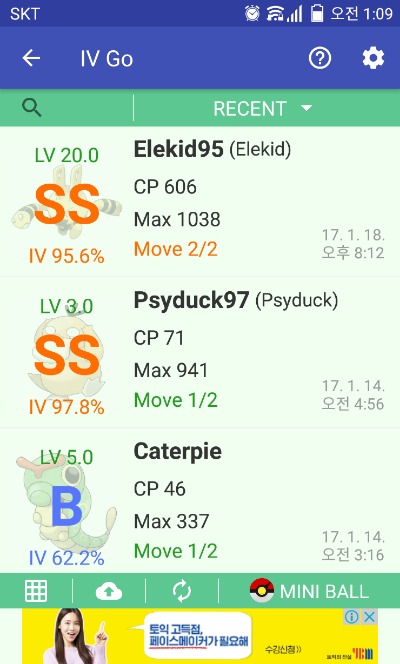 각각의 포켓몬은 개체값이라는 각각 다른 성능?을 가지고 있습니다. 포획한 포켓몬의 CP가 높다고 좋은거 아니예요. 야생의 포켓몬은 대부분 휴지통으로 보내고 개체값이 높은 포켓몬을 모아 두어야 합니다.