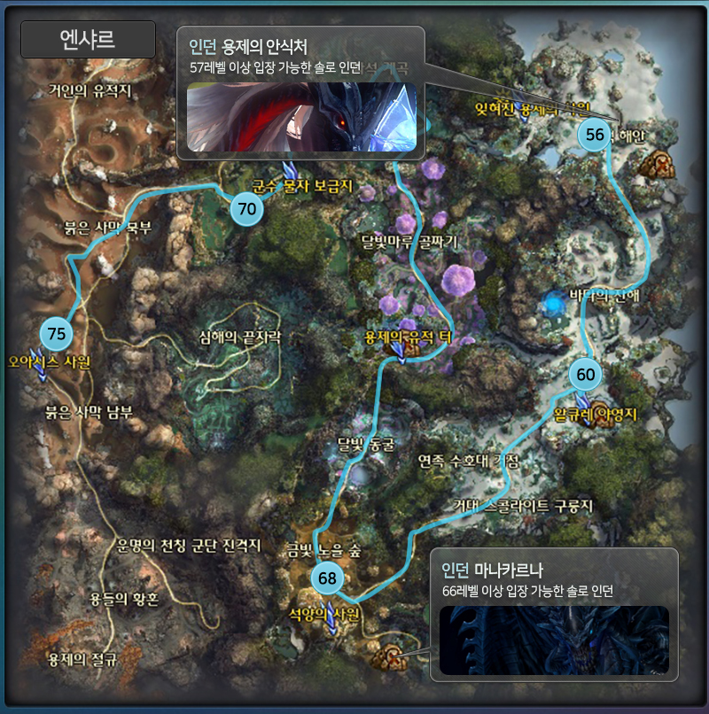 아이온 엔샤르 지역 가이드(Lv 56~75)