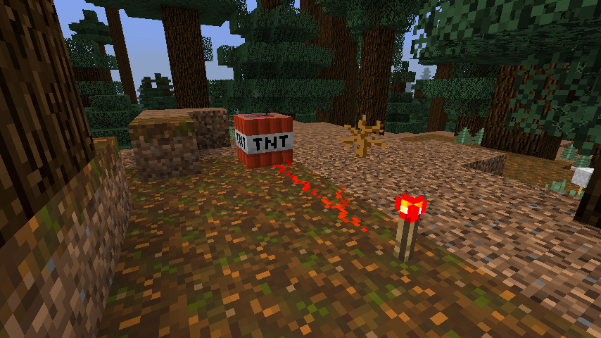 다른 기능으로 나무 압력판은 아이템을 던져놓아도 눌려있어서 전기 신호를 줄 수 있다