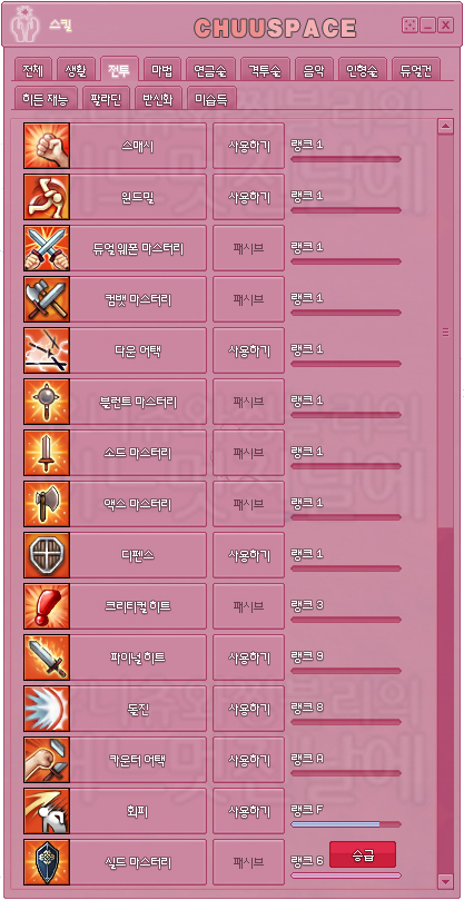 마비노기 전사 달인작/마스터전사 스킬찍는법 스킬 ap/전투 달인작 팁