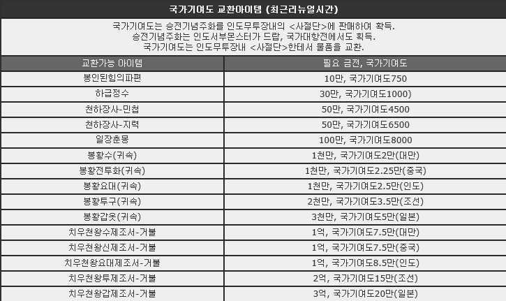 <승전국기념주화, 국가기여도로 얻을 수 있는 아이템들>