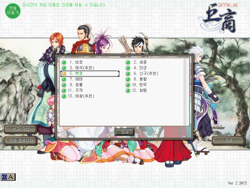 그리고 가장 유저가 많은 '백호'서버와 '주작'서버는 추천서버로 선택되지 않았습니다.