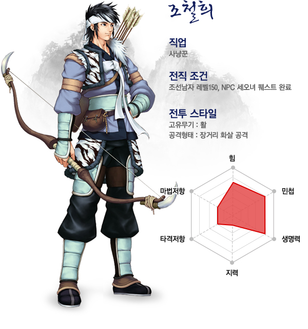 본캐릭터의 경우 전직 전(前)에는 각 캐릭터간 차이는 '외관'말고는 전혀 없기에 무기에 따라 스텟을 올리시면 되고,
