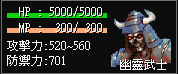 흉노전사 | 스샷:hunswarrior.spr 경험치:265 속성:타격저항10% 마법저항10% 스킬:폭뢰격 드랍:석류석, 만리장성지도, 흉노의염료, 낡은설좌봉(58), 하급정수 지점:만리장성 |