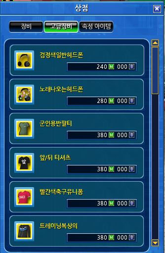 고급장비로 들어가면 이렇게 게임머니로 7일짜리 장비를 구입할 수 있습니다.