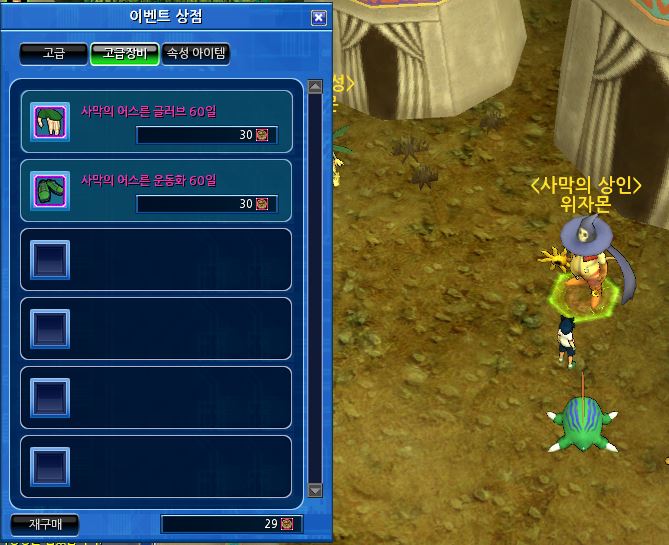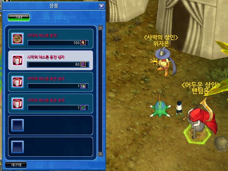 다쓴 사막장비는 다시 동전 1개로 되팔수 있습니다.