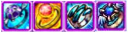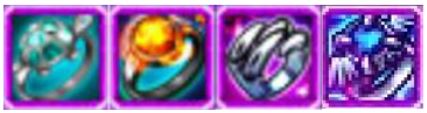 ▶ 현무몬의 반짝이는 반지/ 주작몬의 타오르는 반지/ 백호몬의 검푸른 빛 반지/ 청룡몬의 찬란한 반지
