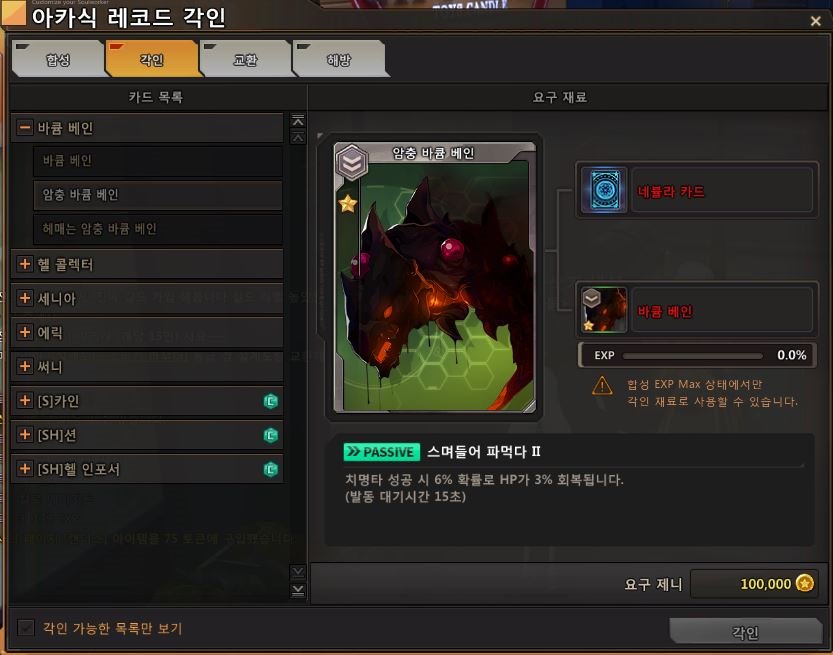 교환: 각인된 아카식 레코드를 상위 카드로 교환할 수 있게 해주는 시스템입니다.