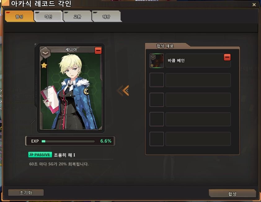 합성: 보유하고 있는 아카식 레코드에 경험치를 부여하여 상위 단계로 성장시킬 수 있습니다.
