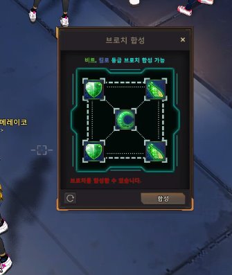 브로치는 브로치 합성기를 통해 합성도 시킬수 있습니다. 합성을 시킬때는 5개의 브로치가 필요하고, 한 단계 더 높은 브로치를 얻을 수 있습니다.