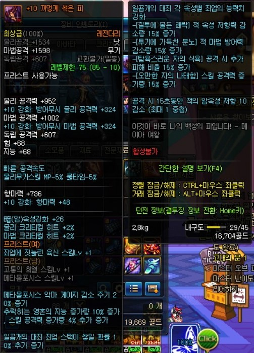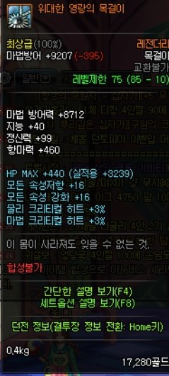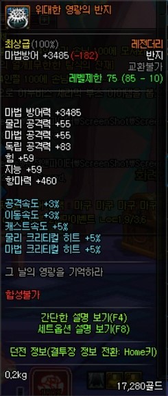 그래서 추천렙은 70~ 지만 항마력기준이 85렙마봉아이템 풀로장착시의 항마력이랑 동일하기 때문에 쩔을 받지않는한 85렙을 찍고 가야됩니다....