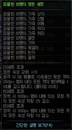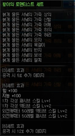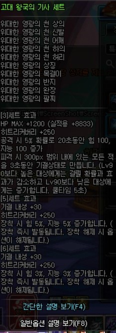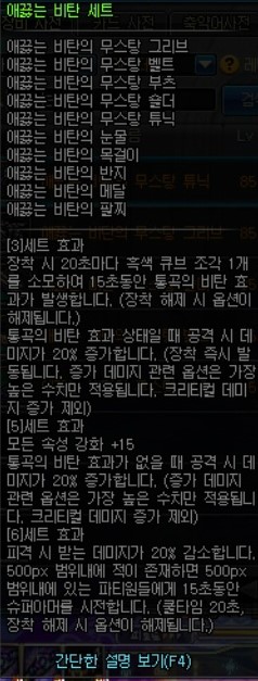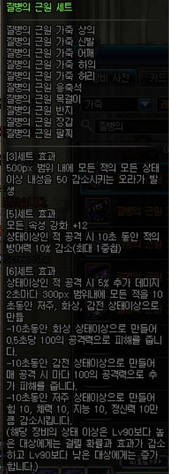 이 아이템의 메인옵션은 방어구에 붙어있는 5개의 오라와 3,5셋의 증뎀20퍼, 6셋효과인 슈퍼아머버프 입니다.