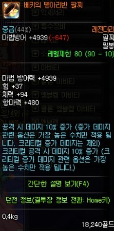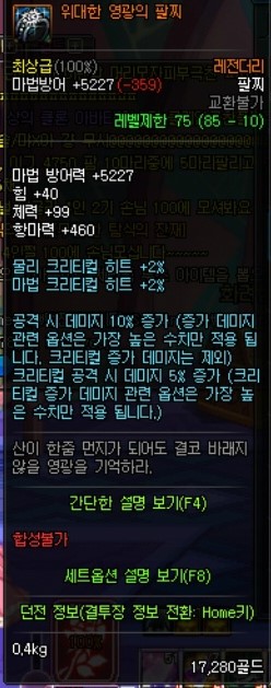 간단하게 비슷한 옵션을 가진 장비를 보죠 팔찌와 비슷하지만 크증뎀5퍼가 더 높은 아이템 입니다.