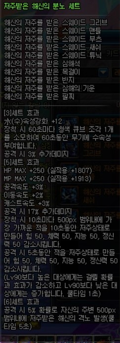 이 아이템을 보면 방어구는 힘지능 뻥튀기에 물마크+20퍼(상의 하의 어깨 벨트에 5퍼씩) 모속강10(신발)