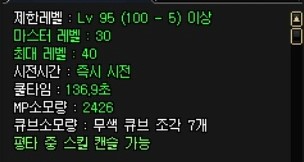 보면 마스터30, 최대레벨40 으로 적혀있습니다.