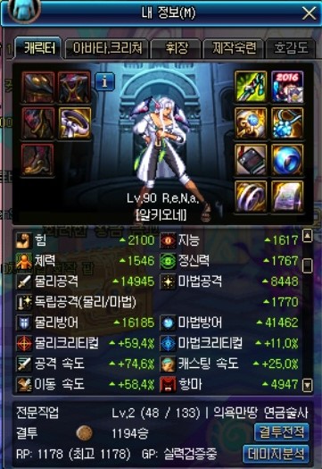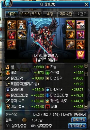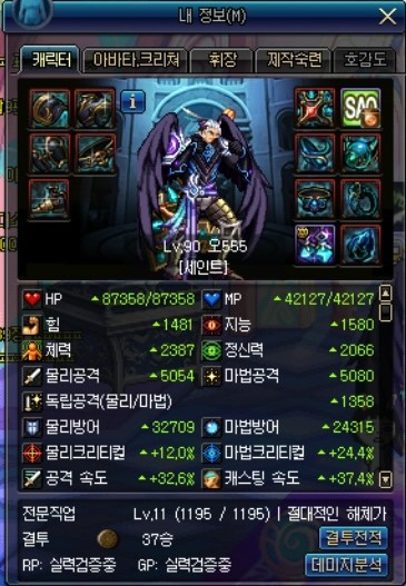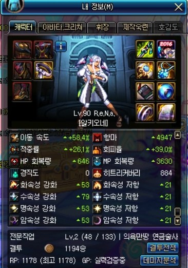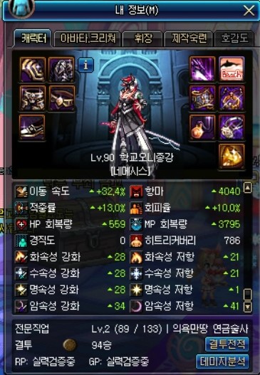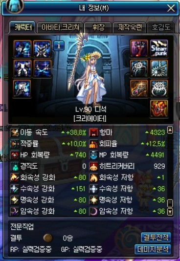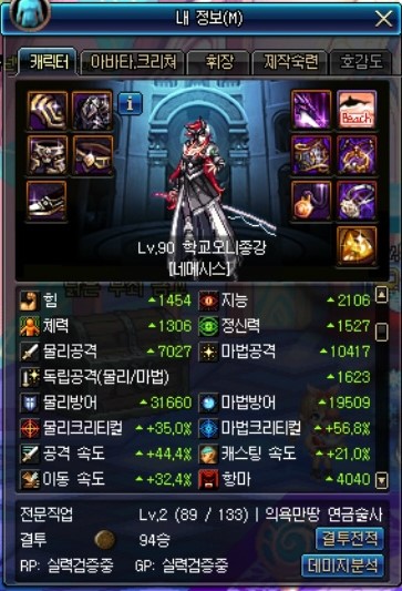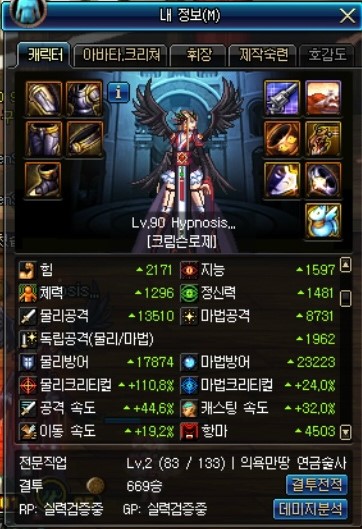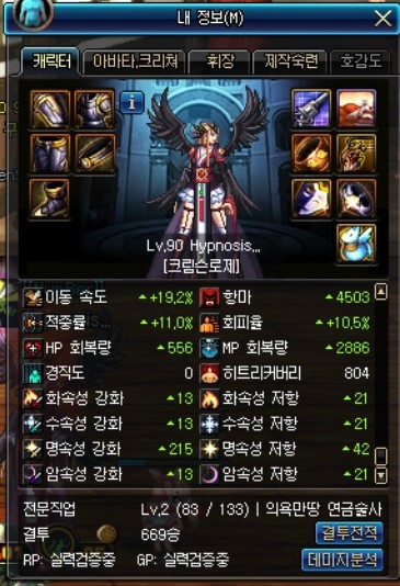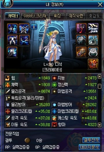 증뎀은 팔찌, 크증뎀은 칭호로 챙긴 캐릭터입니다.