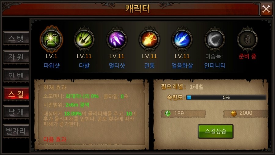 온라인게임에서는 각 직업별 스탯치마다