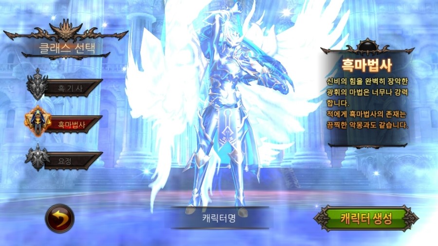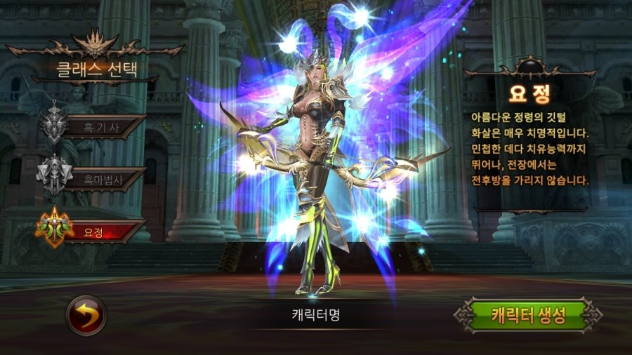 캐릭터는 흑기사 /흑마법사 /요정 3가지로 분류 됩니다