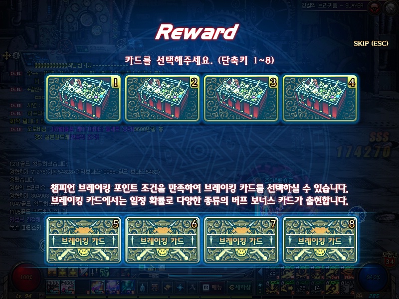 보상화면에서 브레이킹 카드를 획득하실 수 있어요.