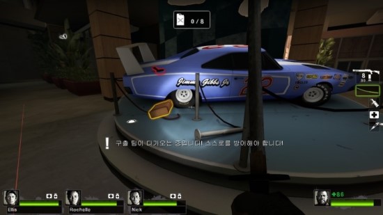 탈출을 위해 전시되어 있는 차에 곳곳에 숨어 있는 기름을 들이 부어야 함!