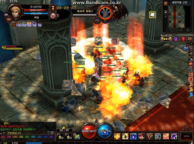 마지막 몬스터를 처단하면, 제단앞으로 이동되면서 베르키엘과 조우하게 됩니다. 베르키엘을 잡을수 있는 스펙은 최소(적정) HP:2.5만(3만)이상 / 방어력:3.5만(4만)이상 정도입니다.