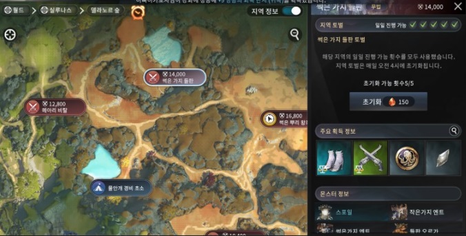위의 이미지에서 보신것 처럼 전투력 14,000인 썩은 가지 들판에 들어가셔서 사냥하면 되는데요.