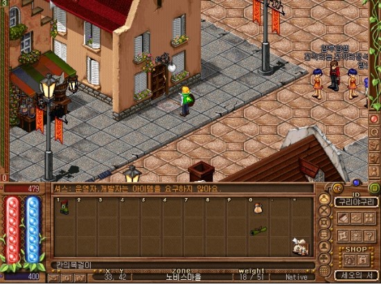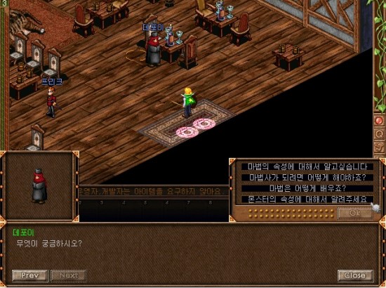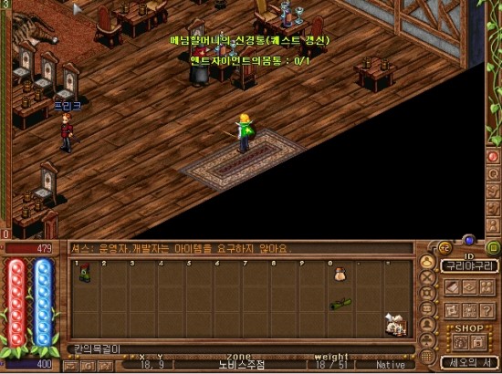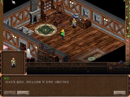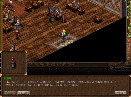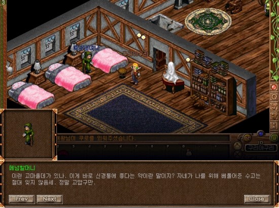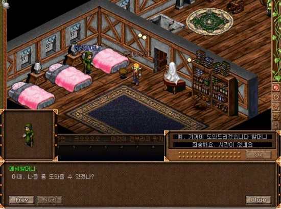 7시 방향의 건물안으로 들어가면 메넘할머니가 있습니다. 말을 걸어볼까요.
