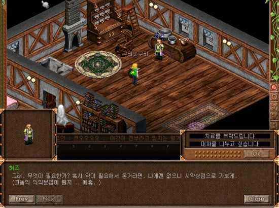 허즈에게 말을 걸어보라고 합니다. 허즈는 바로 옆에있는 의사입니다.