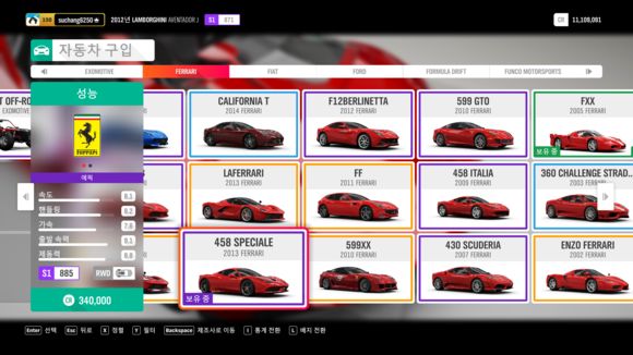 보물 2를 클리어하기 위해선 페라리 458 계열의 차가 필요합니다.
