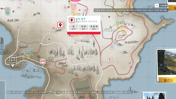 사진의 숲속 질주를 클리어하시면 됩니다. 별 개수 상관없습니다.