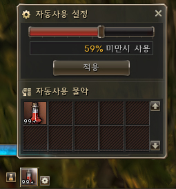 HP 물약은 자동 슬롯에 등록하여 자동 사용이 가능하다. 자동 사용이 가능한 HP 물약을 인벤토리에서 물약 슬롯으로 드래그하여 등록이 가능하며, 물약 자동 사용 설정 기능을 이용하여 물약이 사용되는 시점을 설정할 수 있다. 물약 슬롯은 마우스 우클릭으로 ON/OFF 전환을 직접 조작할 수 있다.