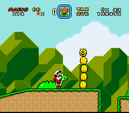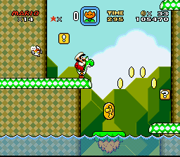 요시를 타고 있을 경우 5칸짜리가, 마리오가 단신으로 올 경우 3칸짜리가 존재하며