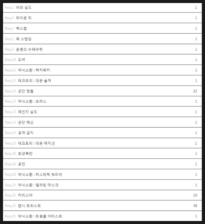 군단 정렬은 남는 스포를 준 상태라서 22레벨 입니다.