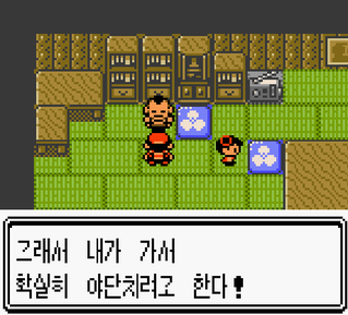 마을 중에 이런 집이 있는데 들어가시면 아저씨가 로켓단한테 빡쳐서 싸우러 간다고 하네요 .