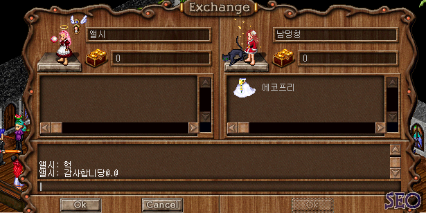 맵열기, TAB키, 기술이 가능하며 대화, 귓속말(모든채팅)이 가능합니다.