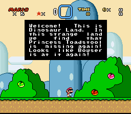 먼저 게임을 맨 처음 시작할 때는 이런 메시지가 뜬다. 대강의 내용은 바우져의 출현과 토드, 공주에 관한 내용. 뻔하다. 바우져가 공주를 납치해 갔겠지...